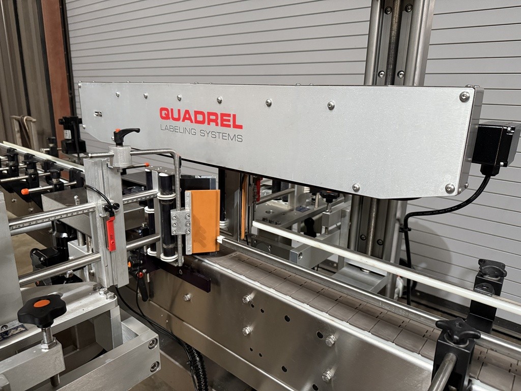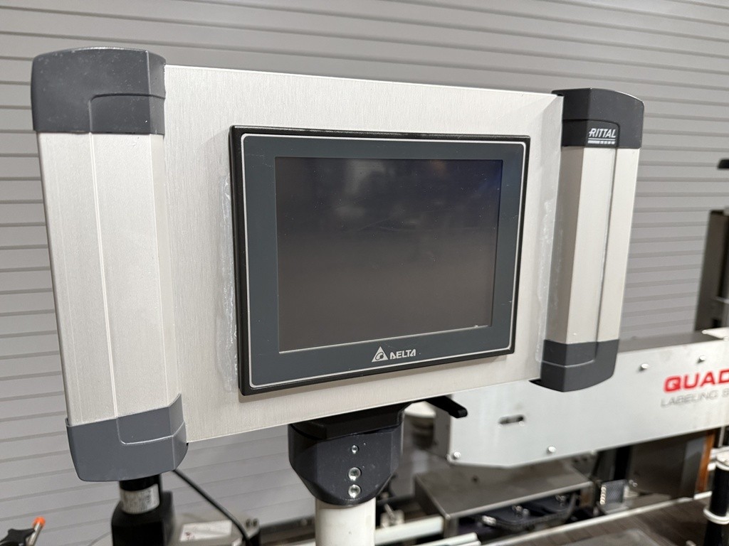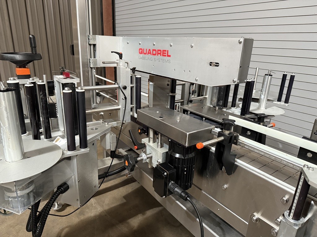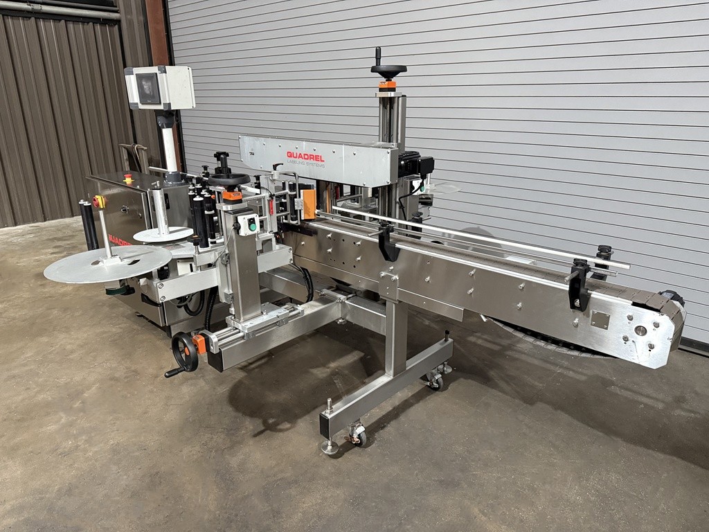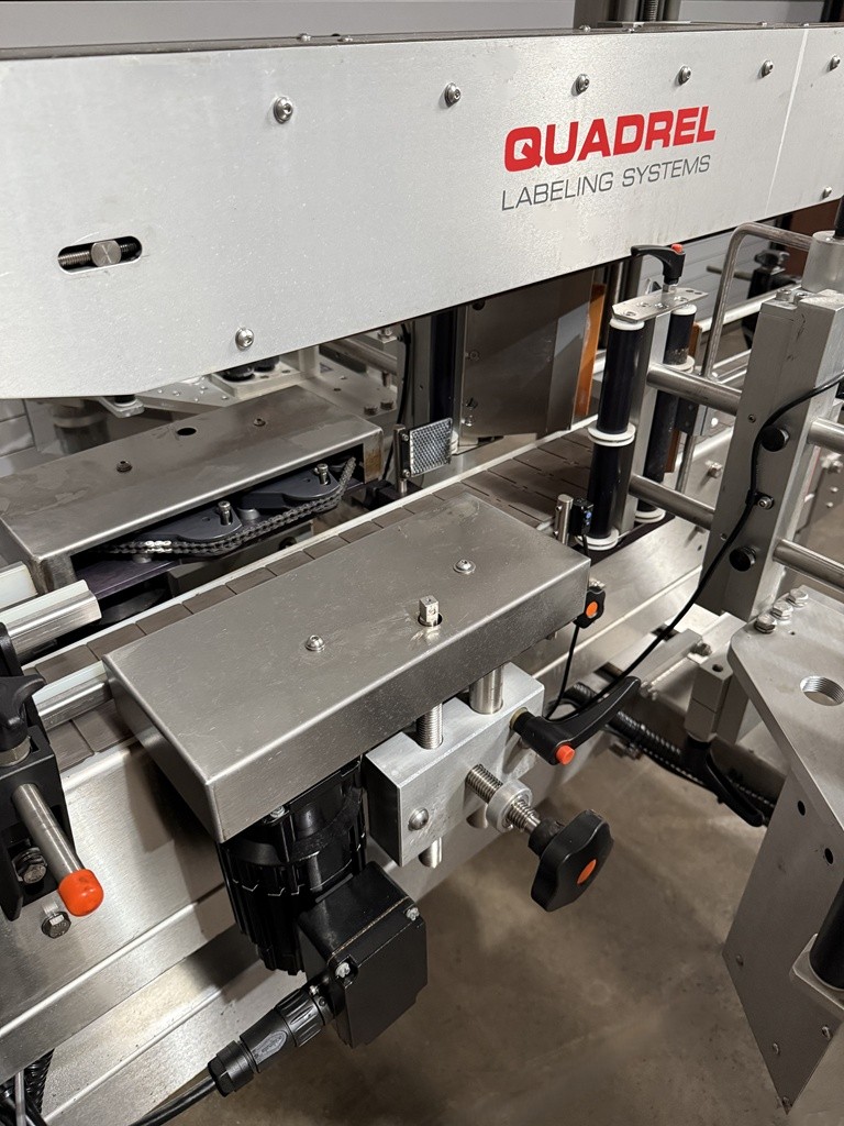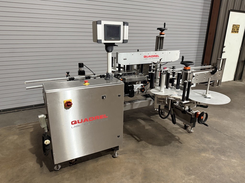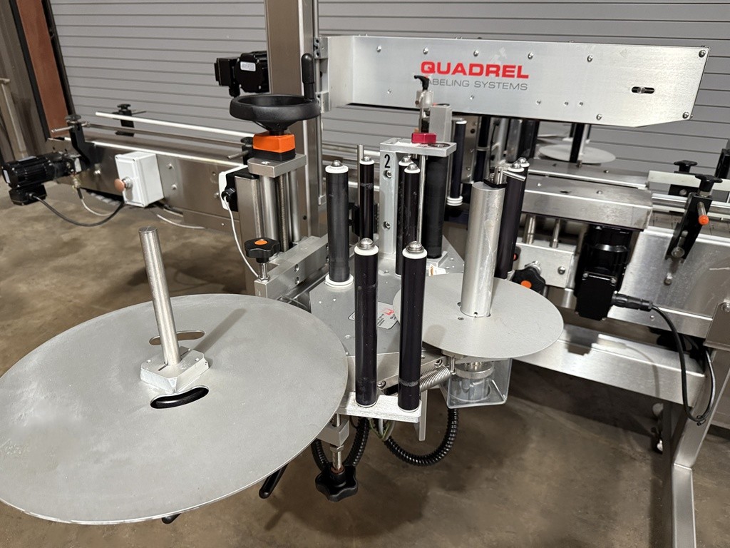 USED Quadrel Techline Front and Back Pressure Sensitive Bottle Labeler, Model #TECHLINE F/B, Serial #83189-100, 2020 Year Of Manufacture, Stainless Construction, 4.5” x 10′ Long, Stainless Powered Conveyor, 7” Max label height, Top Hold Down Belt, Speeds Up To 275 CPM, Maximum Product Height: 14”, Encoder-based speed compensation, Product Spacing Wheel, Product Centering Device, Label Sensor(s), Product Photo-Eye Detection, Pivoting Peel Plate, 16” Label Reel with 3” Core, Adjustable SS Side Rails, Casters, Stainless Floor Levelers, E-Stop(s), Allen-Bradley Micro Logics 1400 PLC, Touchscreen operator interface, Electrical 220 Volts / 50/60 HZ / 1 Phase / 15 Amps, Overall Dimensions 124” L x 94” W x 62” H. This high speed Quadrel Bottle Labeling Machine has been professionally removed from production and is now available from our Caddo Mills, TX Warehouse Facilities. This unit has been function tested under power at our facility and is available for immediate shipment. Inspections are invited. The labeler is currently located at our Used Packaging Equipment Caddo Mills, TX. 75135 Warehouse Facilities. For more information on all of your packaging, labeling, filling, capping and production equipment requirements, please reach out to us today at Used Packaging Equipment LLC.