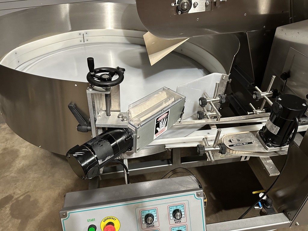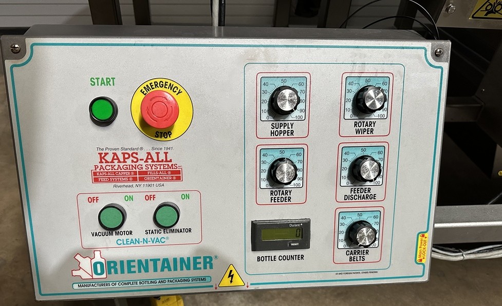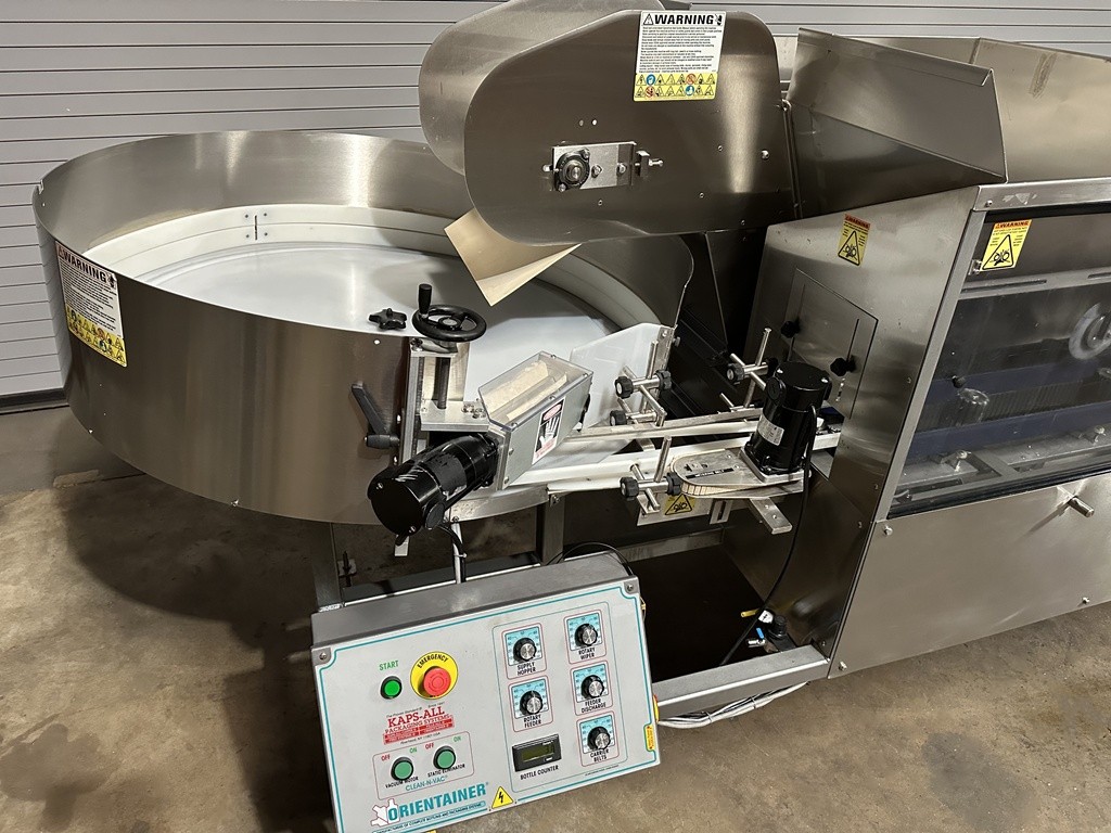 Used Kaps All AU6C Automatic Empty Bottle Unscrambler with Air cleaner, Model #AU6C, Serial #6271, 30 CU FT Stainless Hopper, Empty Bottle Feeder, 48” diameter pre-feeder bowl, Container range from 1/16 oz. to 1 Gallon, Bottle Air Cleaner With Vacuum System, Speeds Up To 300 BPM; based on product specifications, Quick Changeover, Flapper Wheel Feature, Bottle Orientation Hook Feature, Lexan and SS Guarding, Container Photo-Eye Detection, Discharge Photo-Eye Detection, Low Container Detection in Hopper-Elevator, Bottle Counter, Empty Bottle Feeder and Pre-Feeder Variable Speed Controls, Cleated Belt on Hopper-Elevator, Standard Safety Guarding, Stainless Floor Levelers, Operator Interface Controls, Electrical 115 Volt / 60 HZ / 1 Phase, Air Requirements: 80-90 psi @ 3 scfm, Overall Dimensions: 112″ L x 56″ W x 60″ H. New Belts installed. This Kaps All AU-6C Empty Bottle Unscrambler was professionally removed from a midsize bottling facility and is now located at our Used Packaging Equipment LLC Warehouse facilities located in Caddo Mills, TX. 75135. This bottling unscrambler has been function tested, under power at our facility and is production ready. Please reach out to us today to discuss this unscrambler and all of your additional filling, capping, labeling and packaging equipment needs.