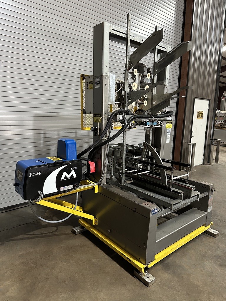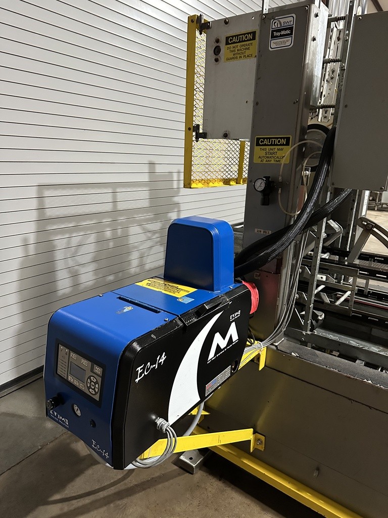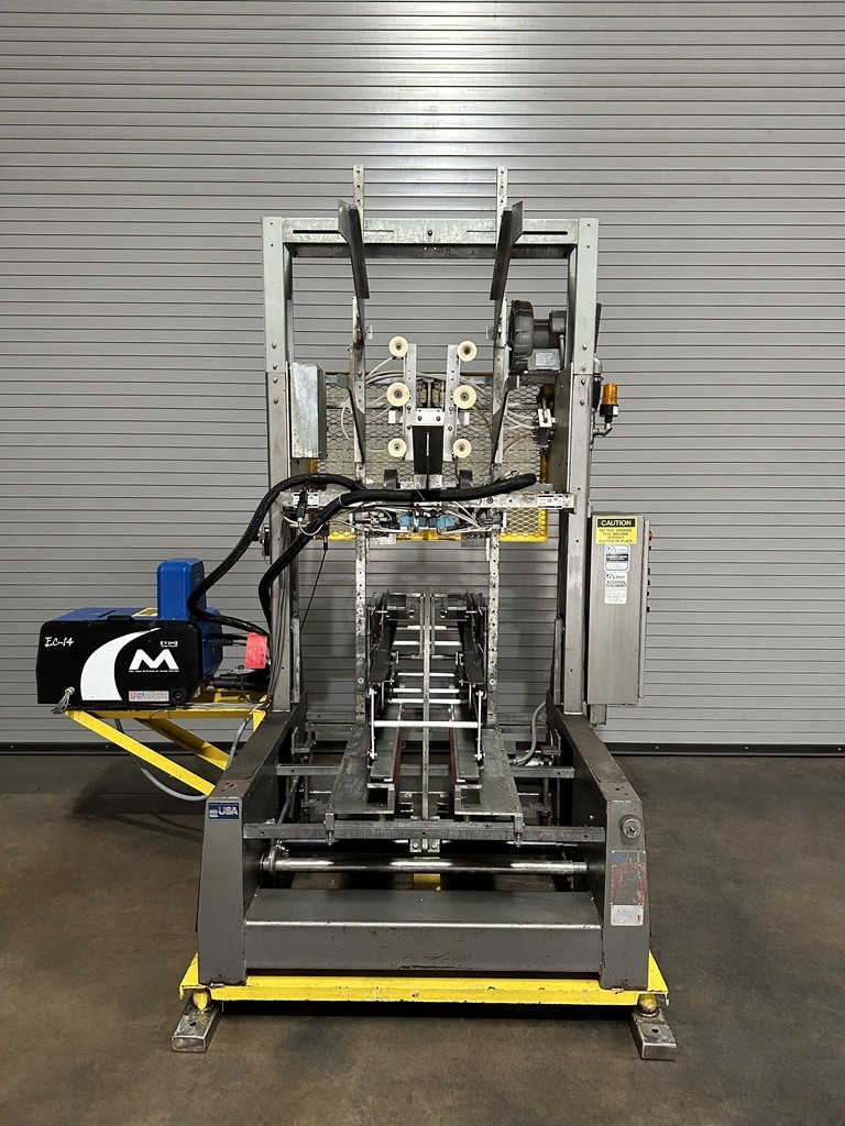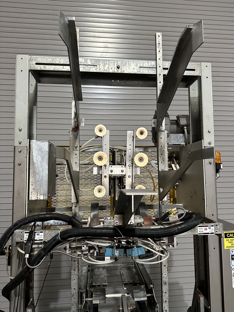 Used SWF Model 1T4, Automatic Tray Former with Hot Melt Glue System, Model 1T4, Serial #5476, 6 Cup Vacuum Blank Feed, Standard Blank Feed Magazine, Rated up to 35 TPM; based upon tray sizes, Tray size range: 7″ to 34″ in Length; 8-1/8″ to 22″ in Width; 1″ to 12″ Height with proper change parts, Knockdown Size Range: 10-1/2″ – 27-7/8″ length, 12″ – 36″ width, Current Mandrel size is approx. 14.5″ L x 10.25″ L x 2″ H Formed Tray Size, VALCO MELTON EC-14 Hot Glue System with Guns and Hoses 230 Volt / 50/60 HZ. / 3 Phase, Standard Safety Guarding, E-Stop, Operator Interface Controls, Electrical 230 Volt / 60 Hz / 3 Phase, Overall dimensions: 8′ L x 54″ W x 8′ High. This SWF 1T4 Traymatic Automatic Tray Former was professionally removed from a bottling facility and is now located at our Used Packaging Equipment LLC Warehouse facilities located in Caddo Mills, TX. 75135. This tray former has been function tested, under power and is production ready. Please reach out to us today to discuss this tray former and all of your additional filling, capping, labeling and packaging production equipment needs.